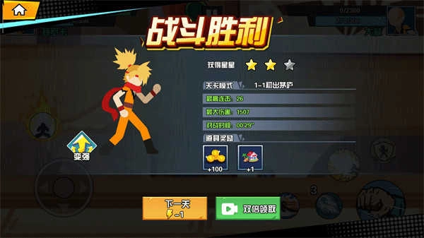 将敌人打败后便可获得游戏的胜利,从而获得想对应的奖励;进入到下一关