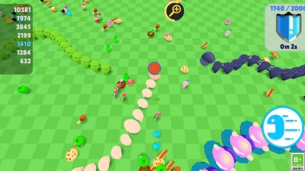 2、吞下食物后体积会增大,还能通过吃掉其他玩家来彰显自己的统治地位。