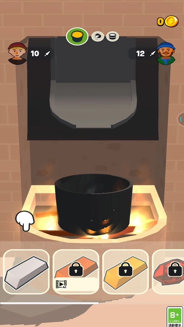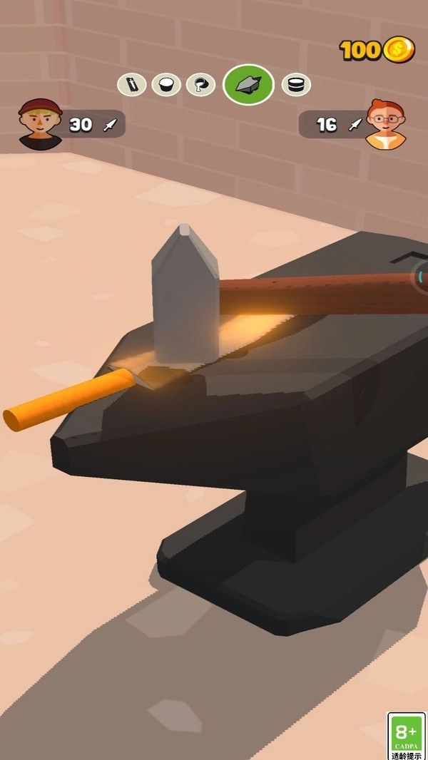 “铸造小能手”能助你成长为铸造领域的行家。你可以独立完成完整的冶炼工序:先熔炼铁水,接着将铁水注入模具,待其临近冷却时,持续用锤子锻打出规整的形态,最后通过淬火处理,就能打造出一把超凡的武器。