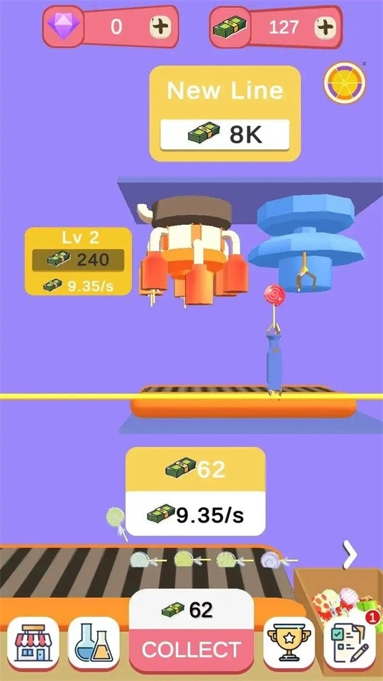 1、玩家得从一无所有起步,一步步打造并扩大属于自己的棒棒糖工厂。