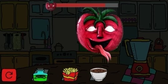 3.玩家必须面对诡计多端的番茄先生。部分食物会使西红柿变得吓人。