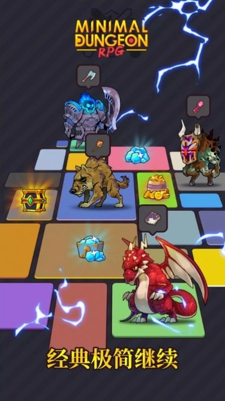 1.地下城风格的策略探索玩法,游戏操作既精致又简单,只需点击方块就能游玩。