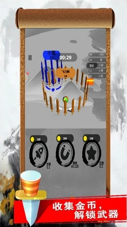 1、这是一款需要玩家在游戏中操控武器,将武器旋转至平面上眼睛发光的目标处的灵活操作类游戏。