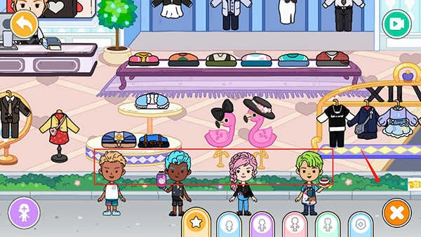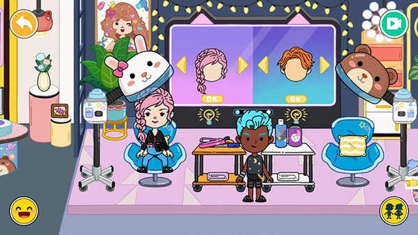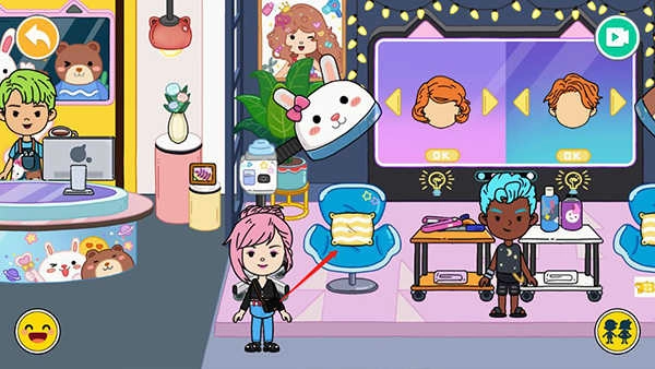 为前来做发型的顾客制定发型,拖动角色到椅子上;