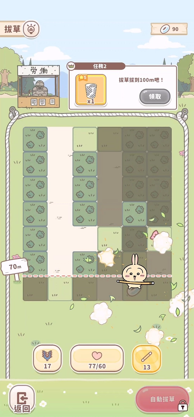在原作剧情里,除了讨伐,「拔草」同样是一项重要活动。在游戏中,玩家需点击明亮处的方格来清理杂草,有时还能获取口哨糖、金币、宝石等日常所需资源。口哨糖可用于「读书」玩法,助力强化队伍战力。不过,每清理一格杂草都要消耗元气,且元气需自然恢复,这让每天的拔草成为玩家的重要任务。
