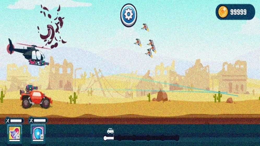 3.摧毁海量战车以获取相应奖励,在荒土之上持续探索冒险、奋勇战斗,通过升级武器来迎战更具挑战性的对决。