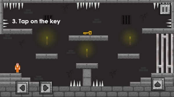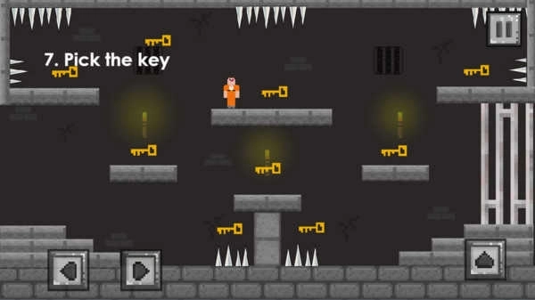 2、操作方式十分简单,只需通过左右移动与跳跃来收集关卡里的道具,之后找到安全的大门即可。