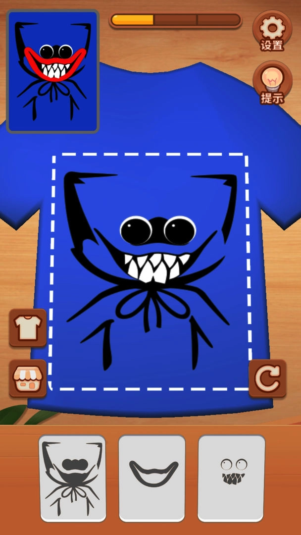 非常好玩的游戏,可以在自己喜欢的衣服上印各种图案,而且有很多关卡。有不同的图案等待玩家打印,卡通的游戏风格,超小清新的游戏界面,让更多的玩家玩完后想玩,特别有挑战性,还有各种任务等待玩家玩,还可以获得奖励。