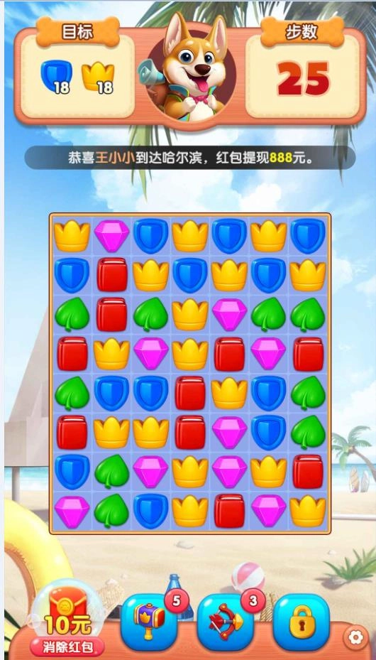 1.玩家借助消除相同图案的操作,完成各类关卡挑战,进而解锁更多趣味游戏内容。