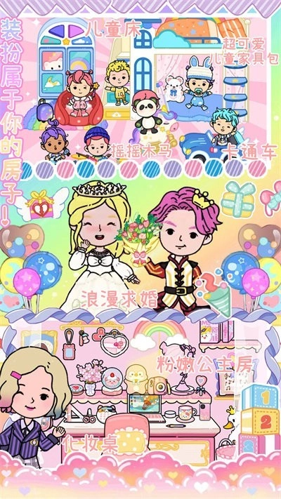 米加海景别墅小镇简直是个超有趣的娃娃屋!米加鼓励所有好朋友用自己的方式去探索米卡海景别墅小镇,在不同地方点击或拖动角色和道具,说不定会有各种惊喜呢!独特的美学设计能帮你激发灵感,创造属于自己的故事。解锁世界场景后,你就有机会游览迈卡镇的各个地方,在市中心、郊区、港口和岛屿,都能收获全新体验!