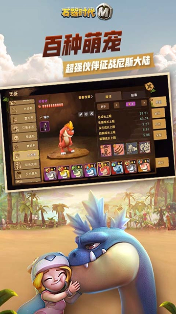 石器时代M是一款极具挑战性的冒险养成游戏,运用3D高清画质构建出清新独特的世界,众多经典宠物得以高度还原,百种萌宠可自由搭配组合,不同组合能带来各异的战斗体验。游戏内玩法丰富多样,玩家可随时捕捉更多萌宠,与野兽展开战斗,还有多元化的社交玩法增添无限乐趣,让你尽情享受冒险的精彩。