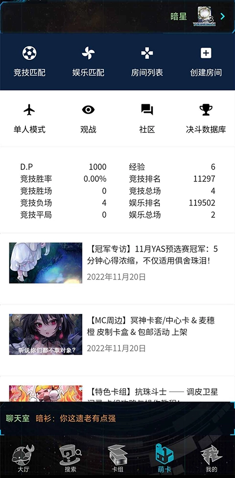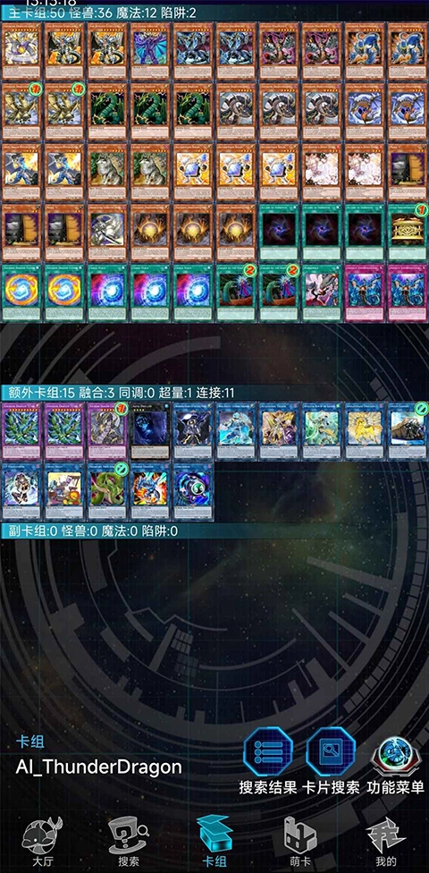 6、具备卡牌资料查询、卡组编辑功能,以及基础的YGOPRO原创对战视频组卡功能,同时支持局域网(面对面)连接。