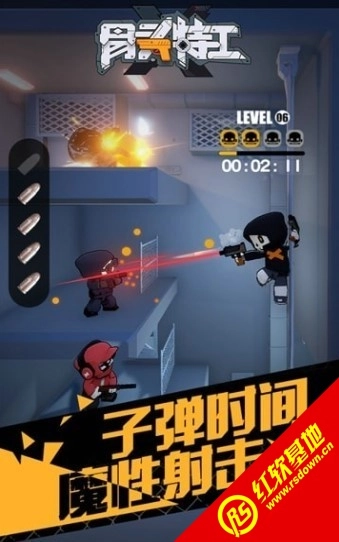 这是一款幽默搞笑的射击闯关游戏,玩法十分有趣。我们需要运用不同装备与敌人周旋。游戏采用卡通风格,人物造型Q萌可爱,特效场面却惊心动魄。游戏内还设有一个不错的商店,你可以用获得的积分购买强力枪械!