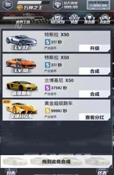 3、从最基础的普通汽车起步,接着一步步进行合成升级,用不了多久,你就能拥有全球顶尖的超级跑车。