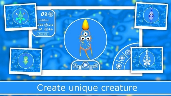 6、充满趣味的休闲娱乐游戏,蕴含适者生存这一经典道理。玩家能在神奇海域中自由穿梭,对物种器官进行升级。