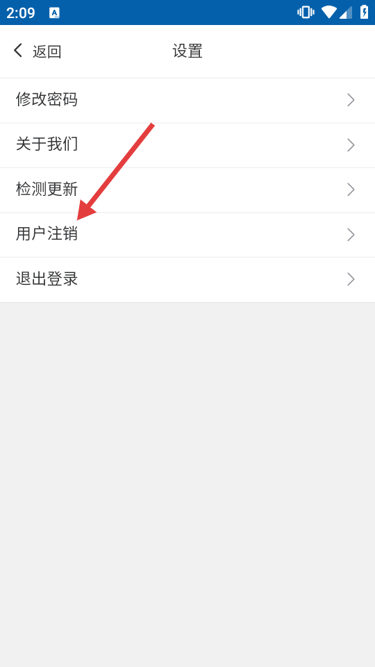 3、在设置页,选择【用户注销】,进入注销提示页。