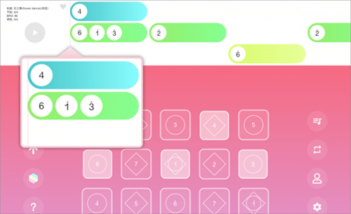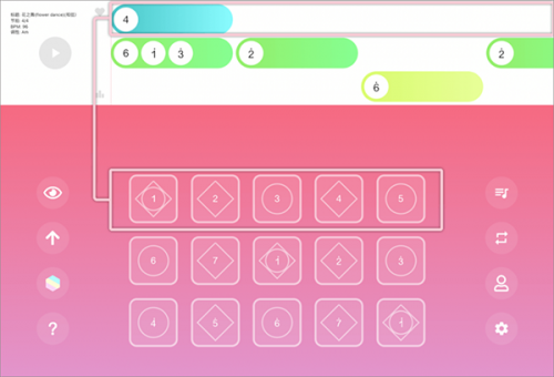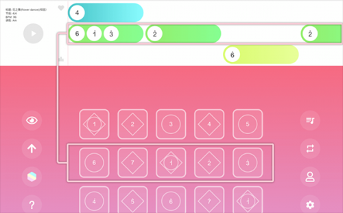 3、点击歌曲标题后稍作等待,乐谱就会加载到练习界面。乐谱共有三行,其中第一行与键盘的第一行按钮相对应。