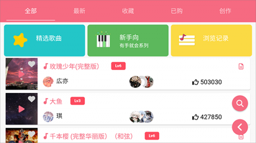 2、在歌曲列表中选择您想练习的歌曲。