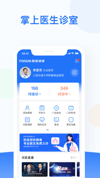 复星健康医生版为医护工作者配备了便捷且全面的健康管理工具,同时也为家医签约对象提供包括药品建议、健康指导、转诊在内的各类医疗健康服务。