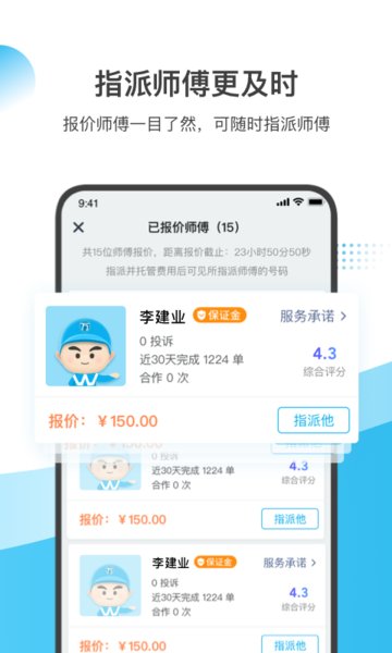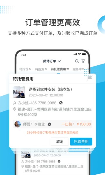 万师傅企业版是万师傅专为商家用户打造的专属下单工具,目前注册用户已超38万,能让用户在移动场景中随时随地完成发布订单、指派师傅、订单支付等操作。