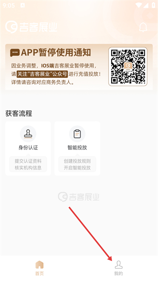 1、在吉客展业首页点击底部的【我的】选项,进入个人中心页面后,就能查看账号相关的功能入口了。