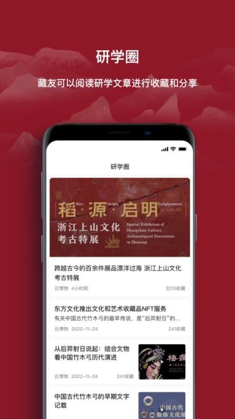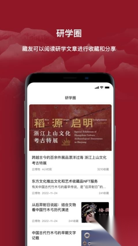 1研学圈板块聚焦藏品领域,会推送相关的专业文章与知识内容,用户能对感兴趣的内容进行收藏或分享,功能设计十分贴合实际使用需求。