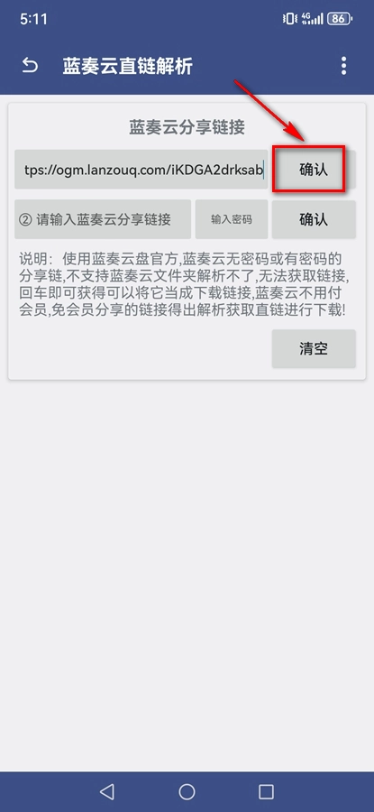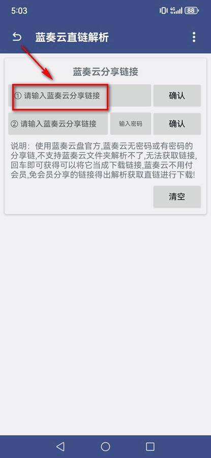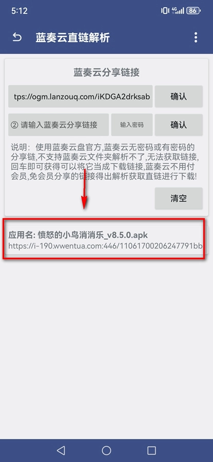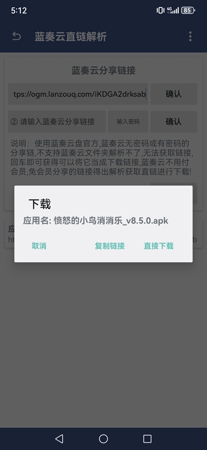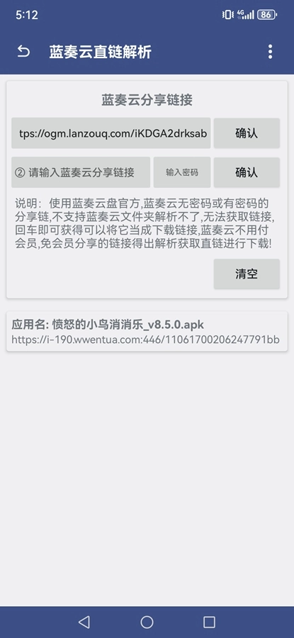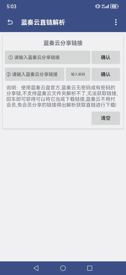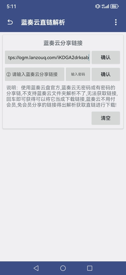 链接解析功能的使用十分简单:用户仅需把蓝奏云的分享链接复制粘贴到App里,然后