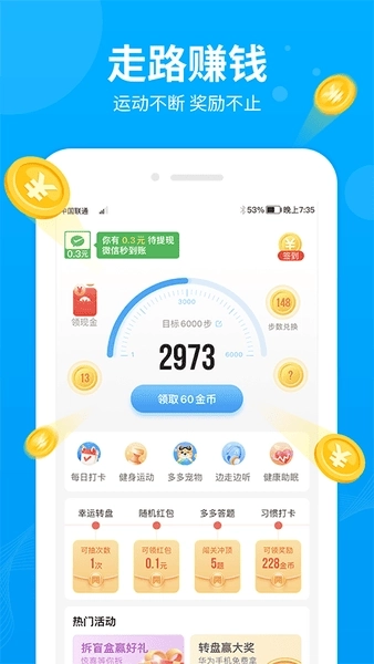 2、提金额,快速到账,走路步数转换为金钱