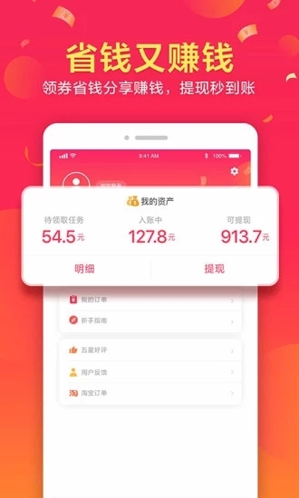1快速查找各类优惠券,轻轻一点就能把优惠收入囊中,帮你在网购时省下不少开支,用起来方便又划算,而且下单后还有额外的返利福利可以拿。