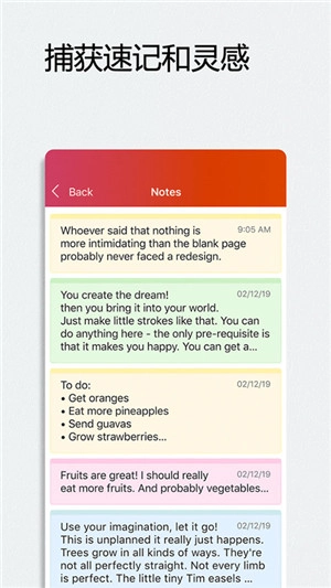 快速记下想法和创意,然后通过便笺保存或共享。