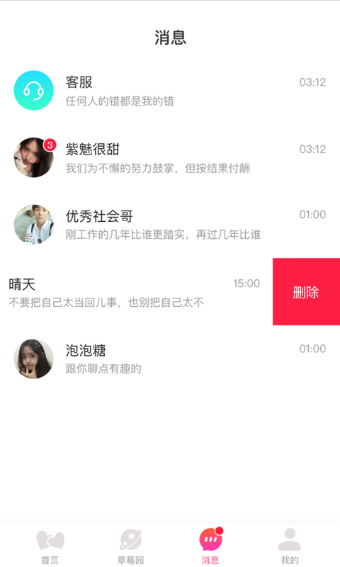 1、丰富多样的交友途径:草莓交友平台设有多种聊天模式,涵盖文字聊天、语音通话以及视频聊天等,助力用户于各类场景中,寻觅最为适宜的沟通手段,极大提升了交友过程的趣味性。