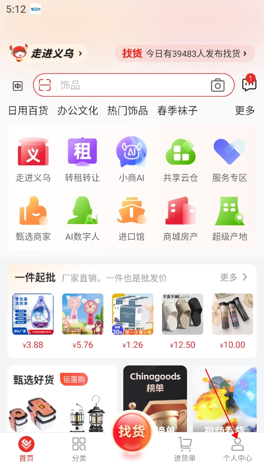 2、进入到我的页面,再点击常用功能下方的“找货需求”选项;