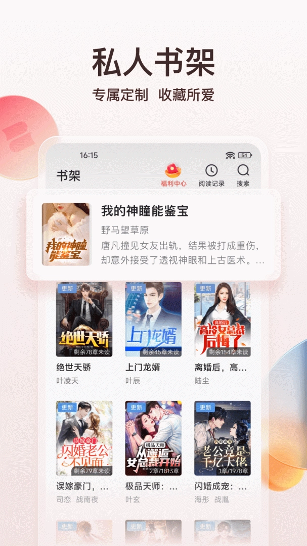 1. 借助智能内容聚合引擎,实时同步全网热门小说资源,每天更新超千部作品。平台与数百位知名作家签约,保障原创内容源源不断地输出。