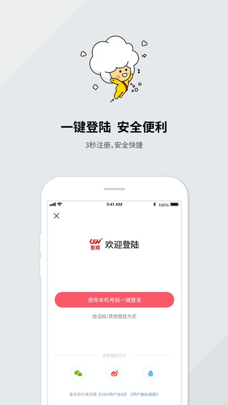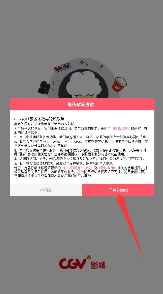 1. 开启CGV电影应用,认真研读隐私政策,随后点击同意按钮,进入登录页面,做好使用准备。