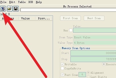 2、启动CheatEngine汉化版,点击像图中展示的小电脑图标。