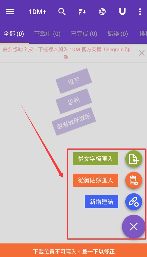 3、通过右下角加号按钮,可导入文本文件、剪贴板链接或手动新增下载任务。