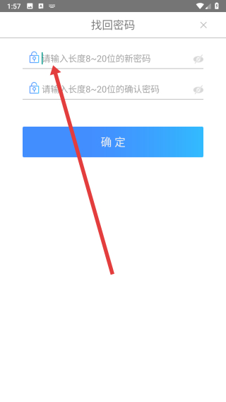 4、可以通过在输入填写两次新密码后,点击确定完成新密码的设置。