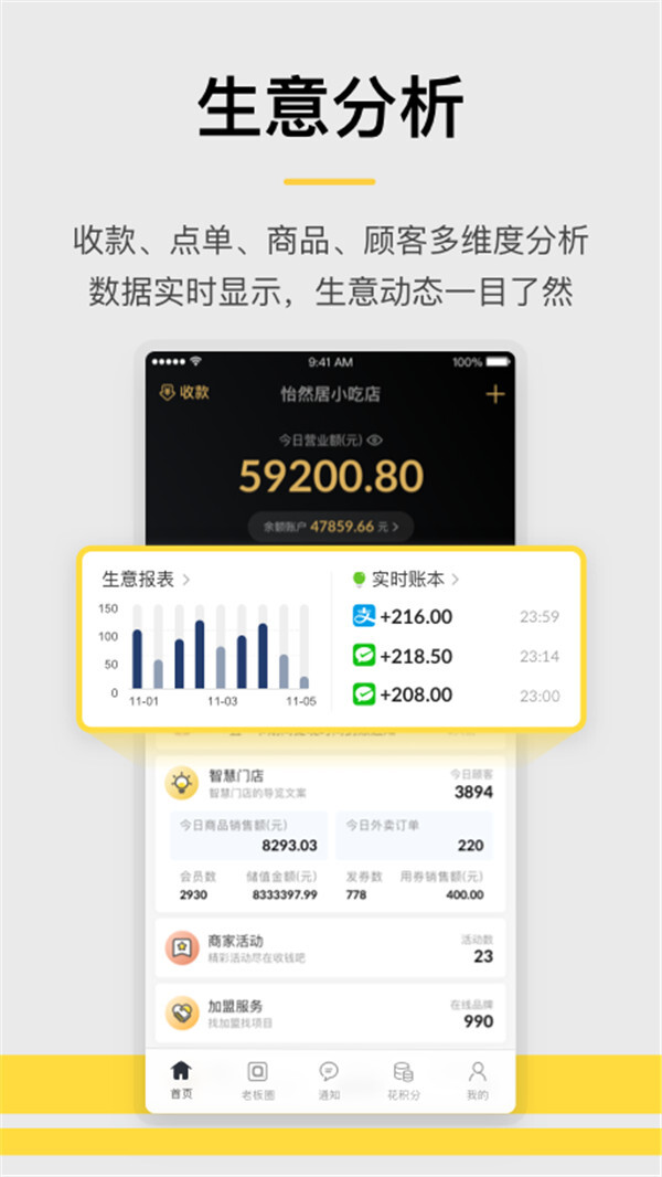 2. 可同时管理多个店铺,各店铺营业额单独计算,查看便捷。