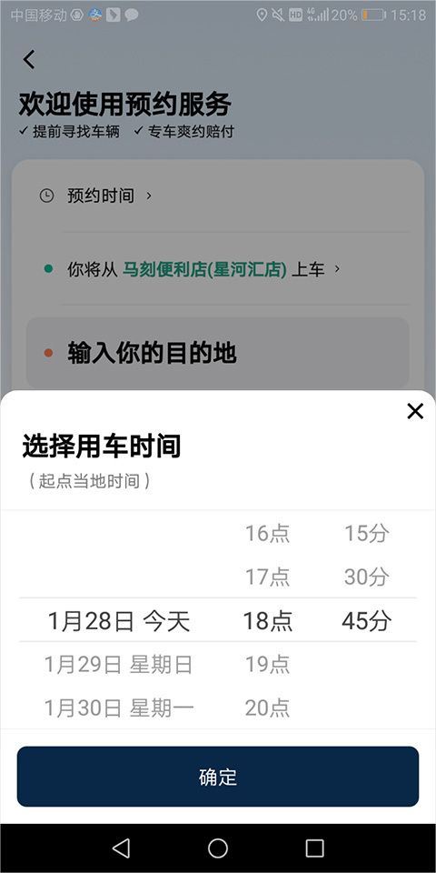 3、挑选用车时间,随后点击确认,就能预约打车时间。