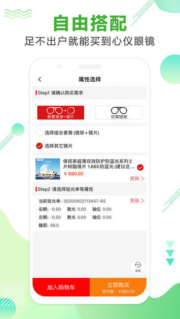 6、在线支持实时眼镜试戴功能,系统会依据试戴结果智能推荐镜片。