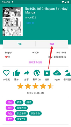 2、点击你所喜爱的漫画详情页中的阅读按钮。