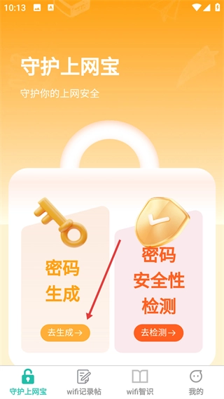 1. 于【守护上网宝】页面寻觅【密码生成】模块,点击该模块中的【去生成】按钮,以生成新密码。