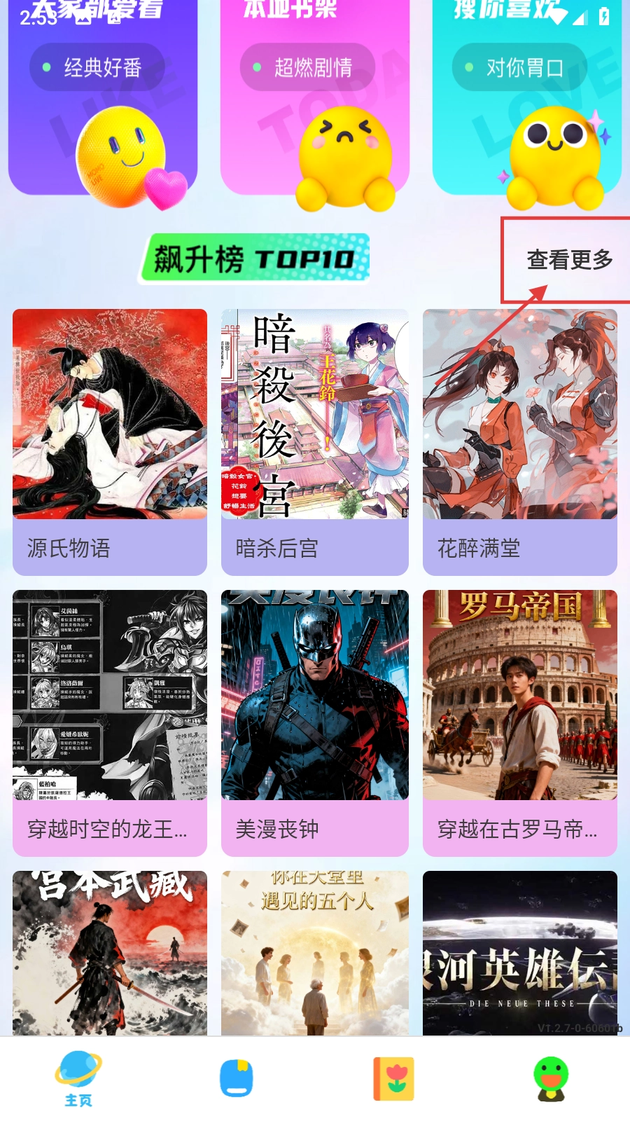 1、于软件主页能够查看【飙升榜TOP10】的小说,点击【查看更多】便能够浏览更多榜单相关内容。