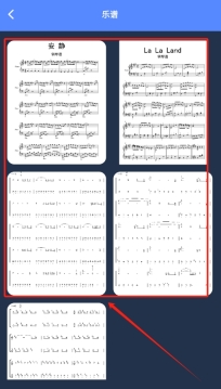 2、当你来到乐谱页面,从中挑选一曲你钟爱的乐谱,轻点一下,即可进入详情页面。