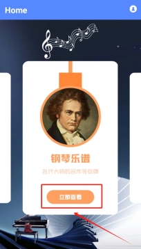 1. 开启软件后,在首页即可瞧见“立即查看钢琴乐谱”的按钮,点击该按钮,便可进入乐谱页面。