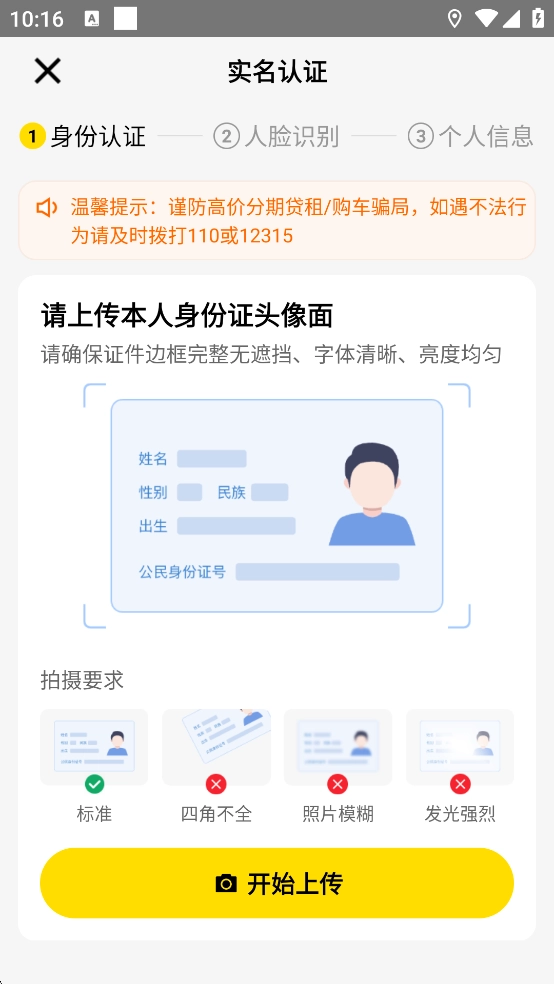 登录账号填写姓名、年龄等信息,上传身份证照片。