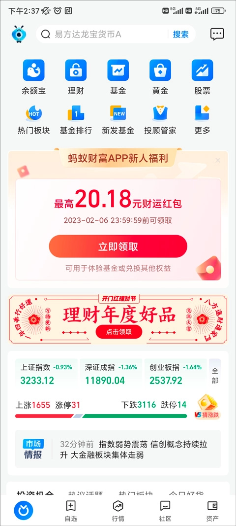 这个综合理财平台整合了财经动态、市场数据、互动社区与智能投顾等功能模块,用户能便捷获取实时金融信息,通过统一账户即可完成货币基金、定期理财、黄金产品及各类基金的交易操作,借助简单易用的界面设计,轻松实现碎片化资产的稳健增值。