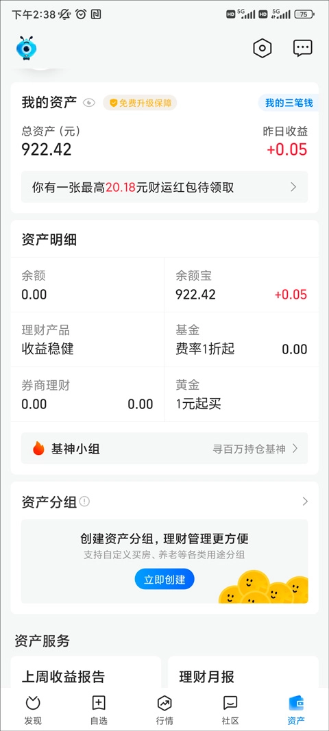 2下方设有自选、行情、社区和资产几个功能选项,接下来需要点击资产选项来进入相关页面。