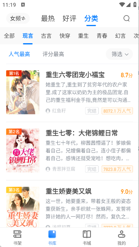 2、书库页面包含多种小说资源类型,像玄幻、古代、现代等都有涵盖。