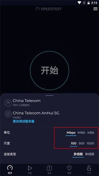 1、打开Speedtest后点击首页的开始按钮
